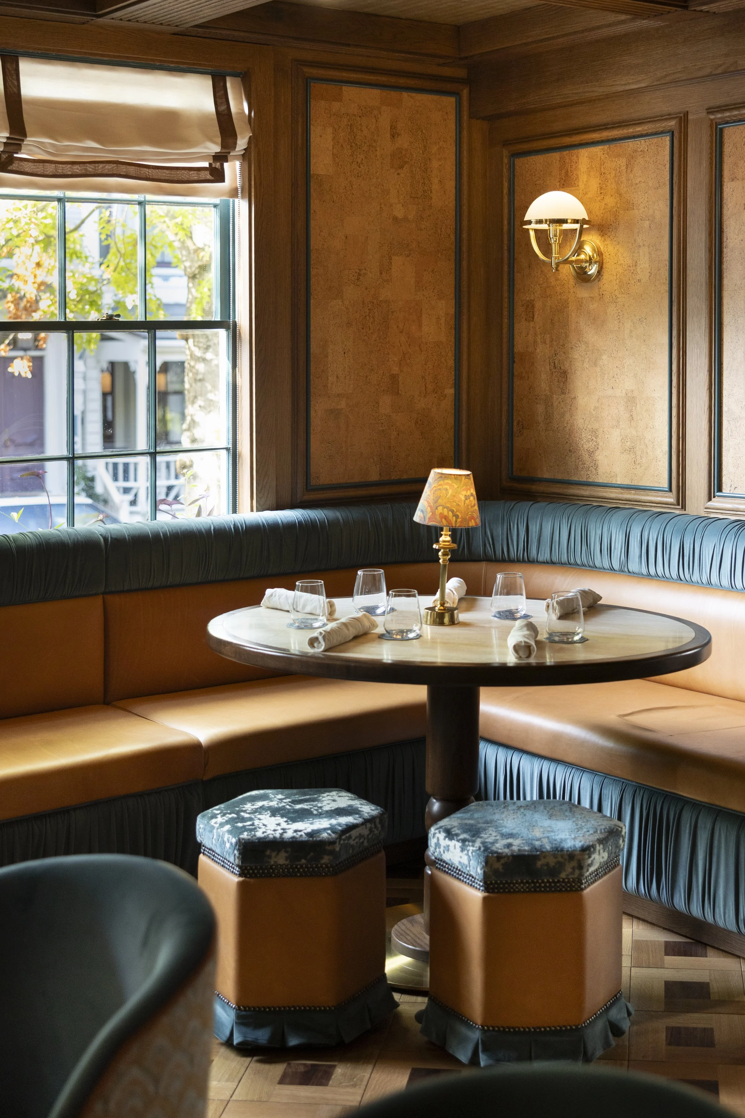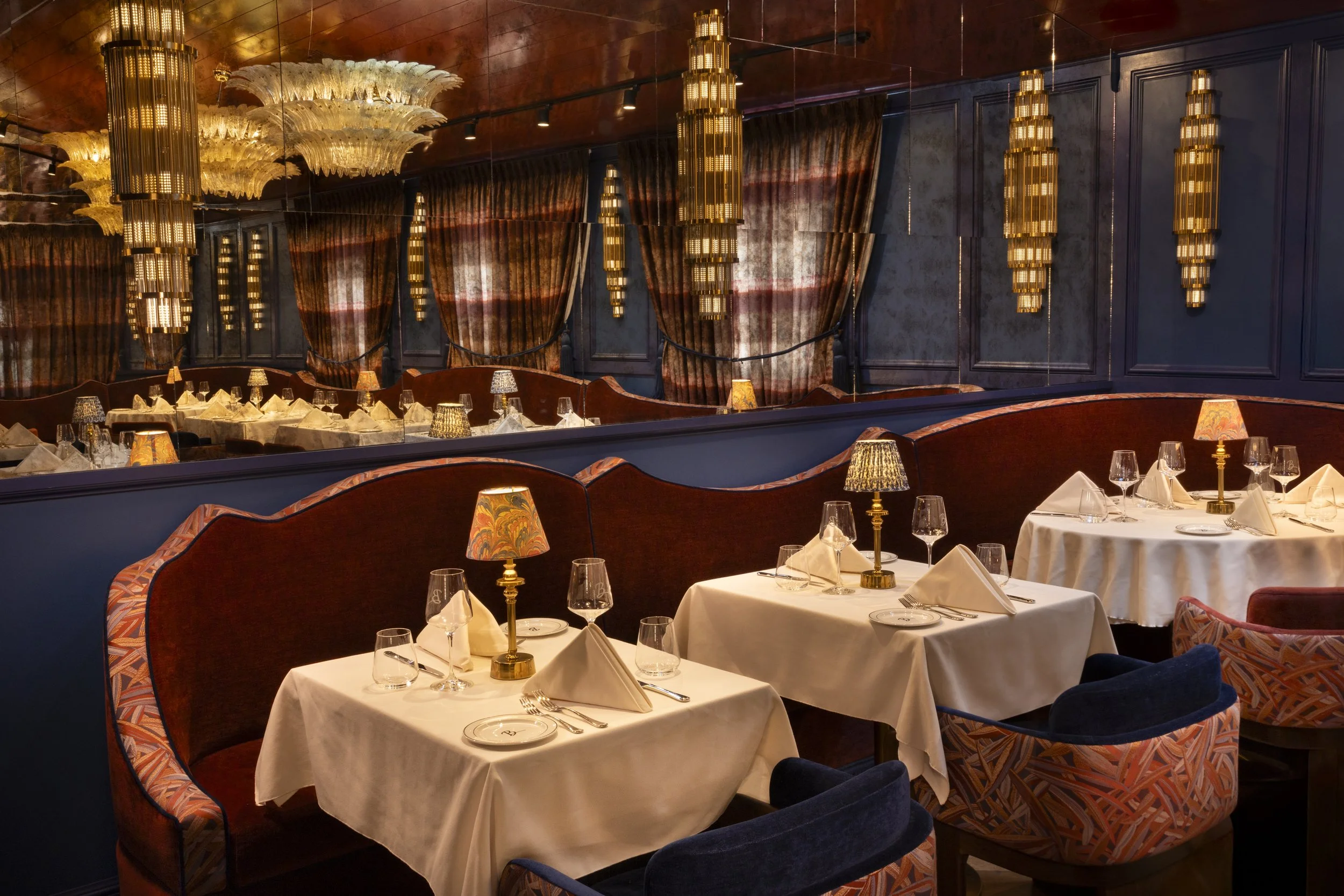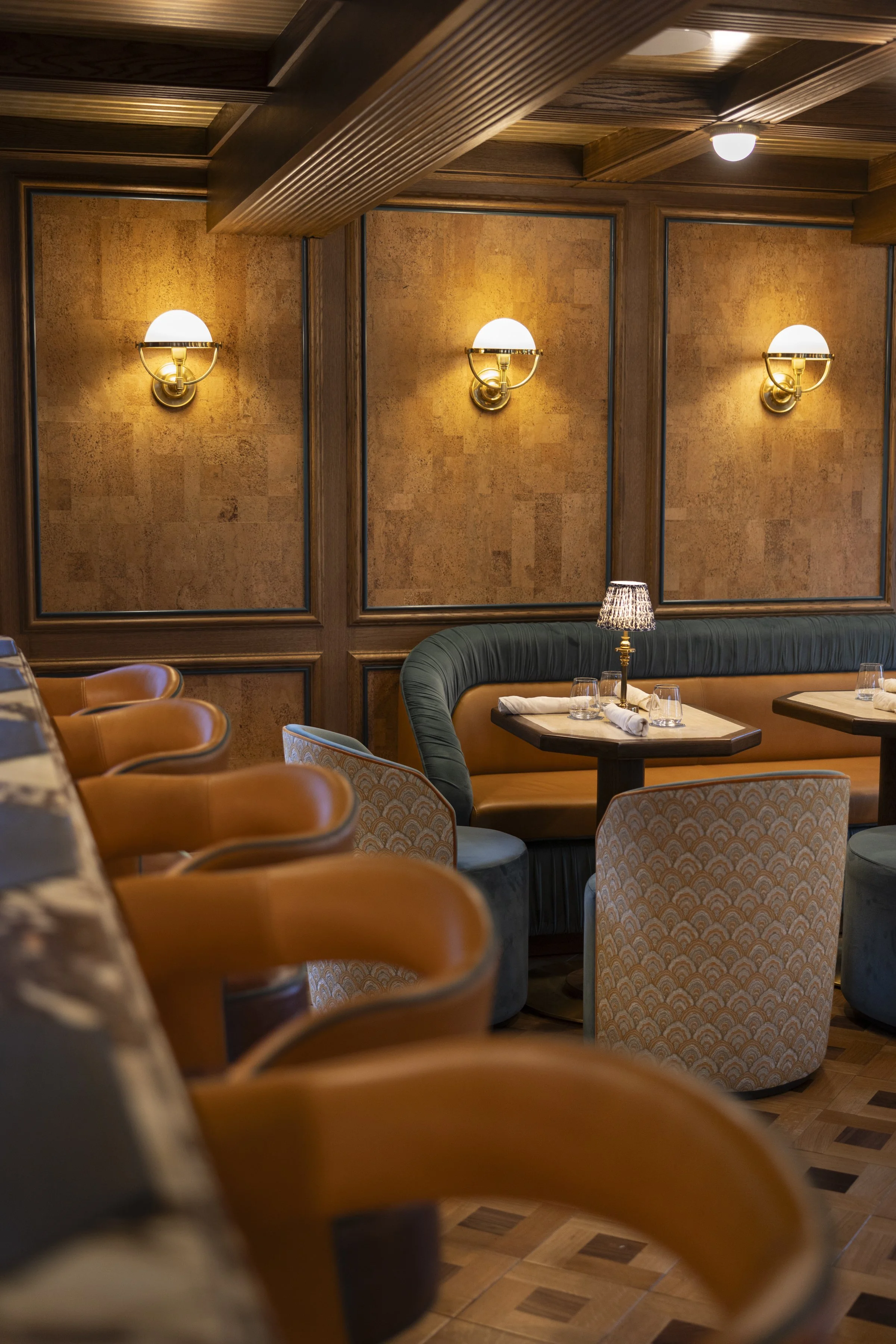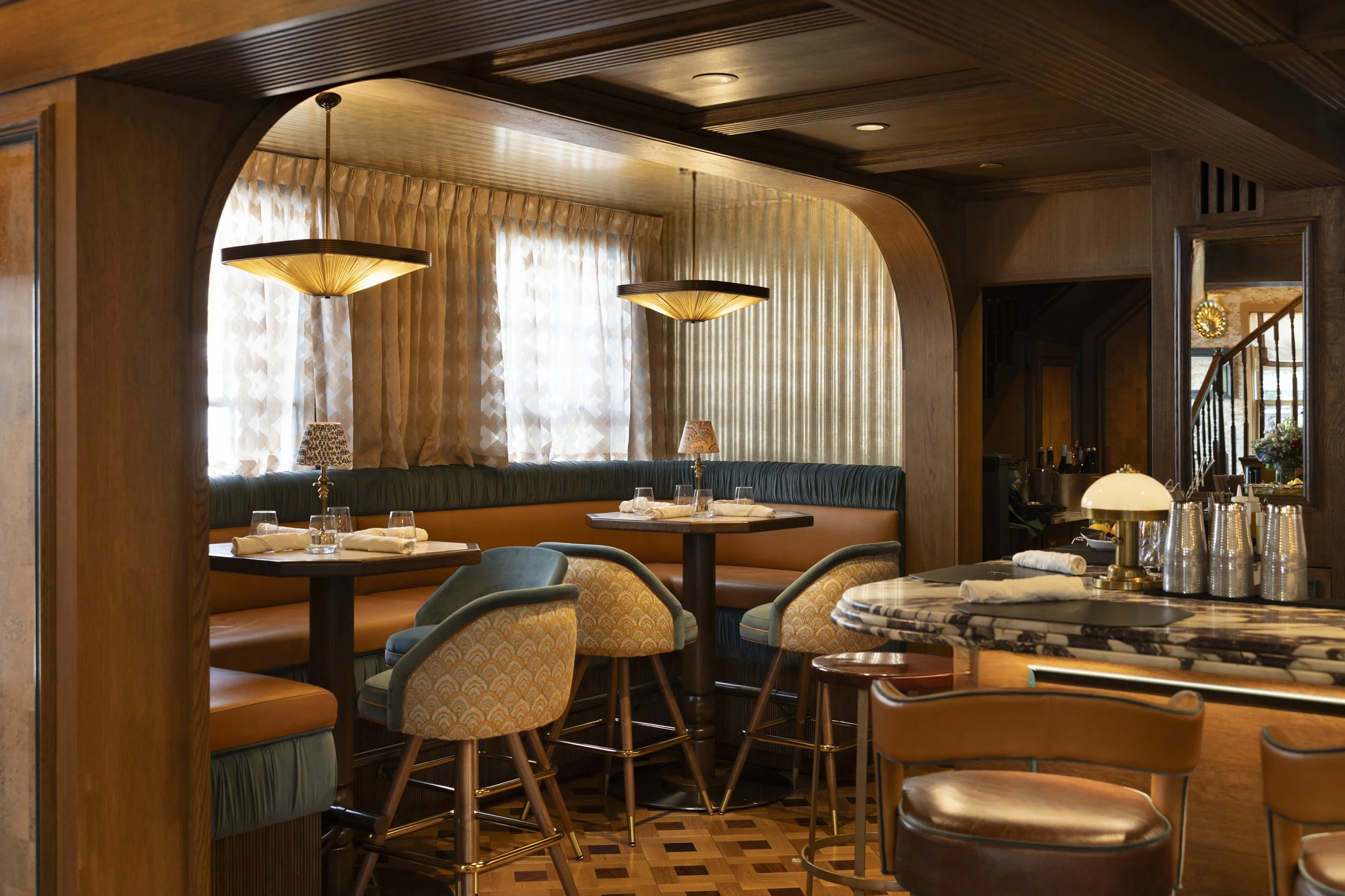 This Nantucket restaurant is a dramatic reinterpretation of coastal elegance through a lens of old-world society glamour. The space is a striking departure from the island's traditionally understated aesthetic. Extravagant design moments that flirt with its participants while honoring the timeless character of its historic surroundings. Bold materials and textural layers were chosen to help create a space that re-writes the narrative of coastal dining. A space that has an opulent edge but is also warm and welcoming.