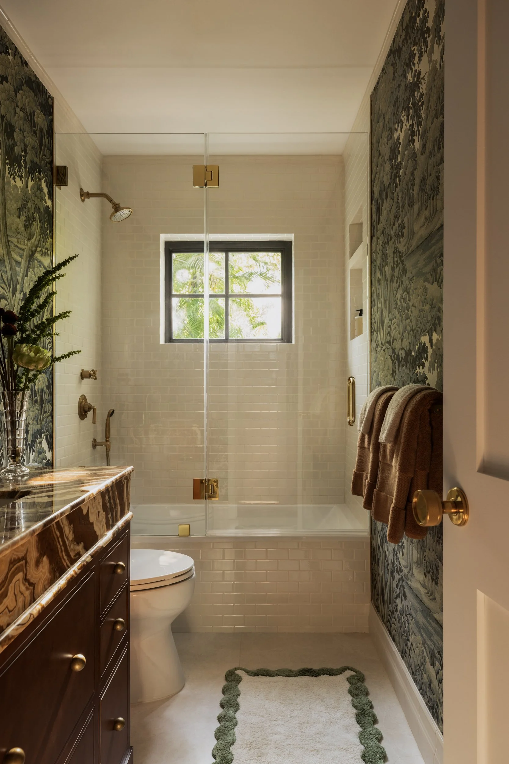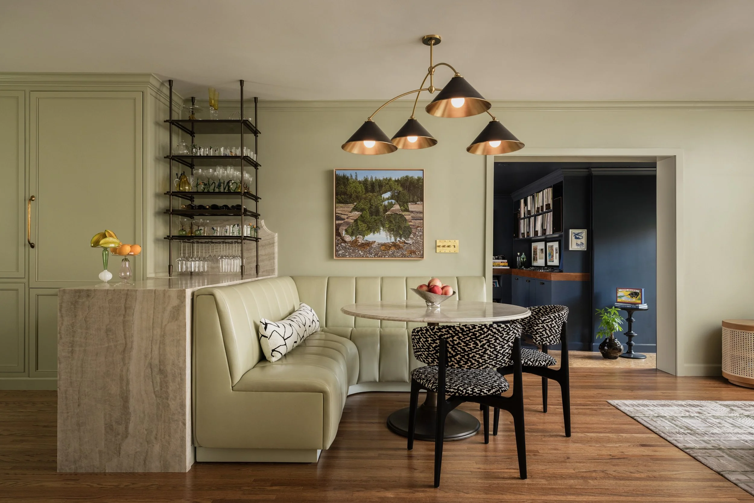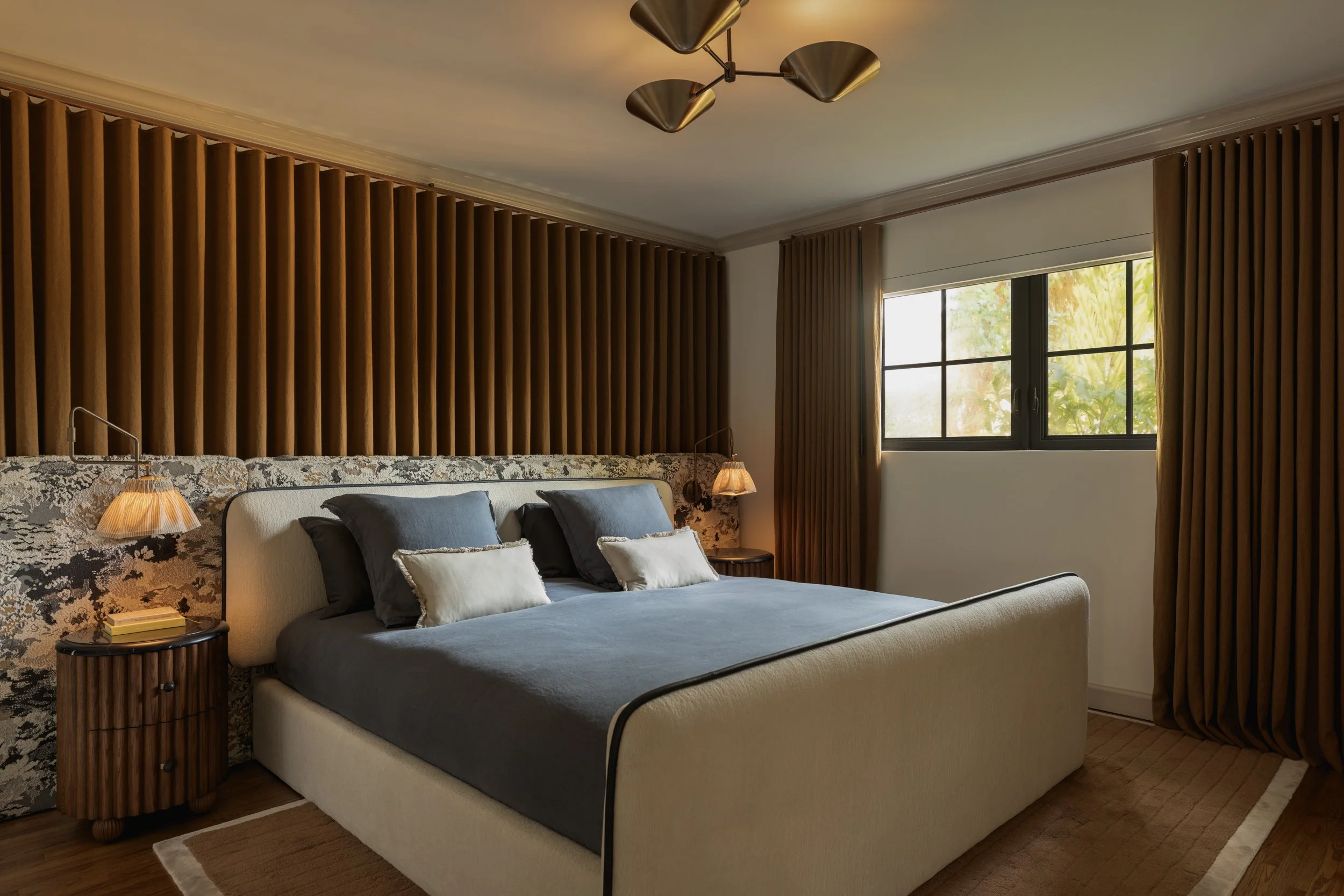 Color became the soul of the project—but in layered, muted tones rather than bold statements. Inspired by the palms, sky, and water outside their windows, the couple leaned into “quiet color”: sage greens, hushed blues, and earthy neutrals.