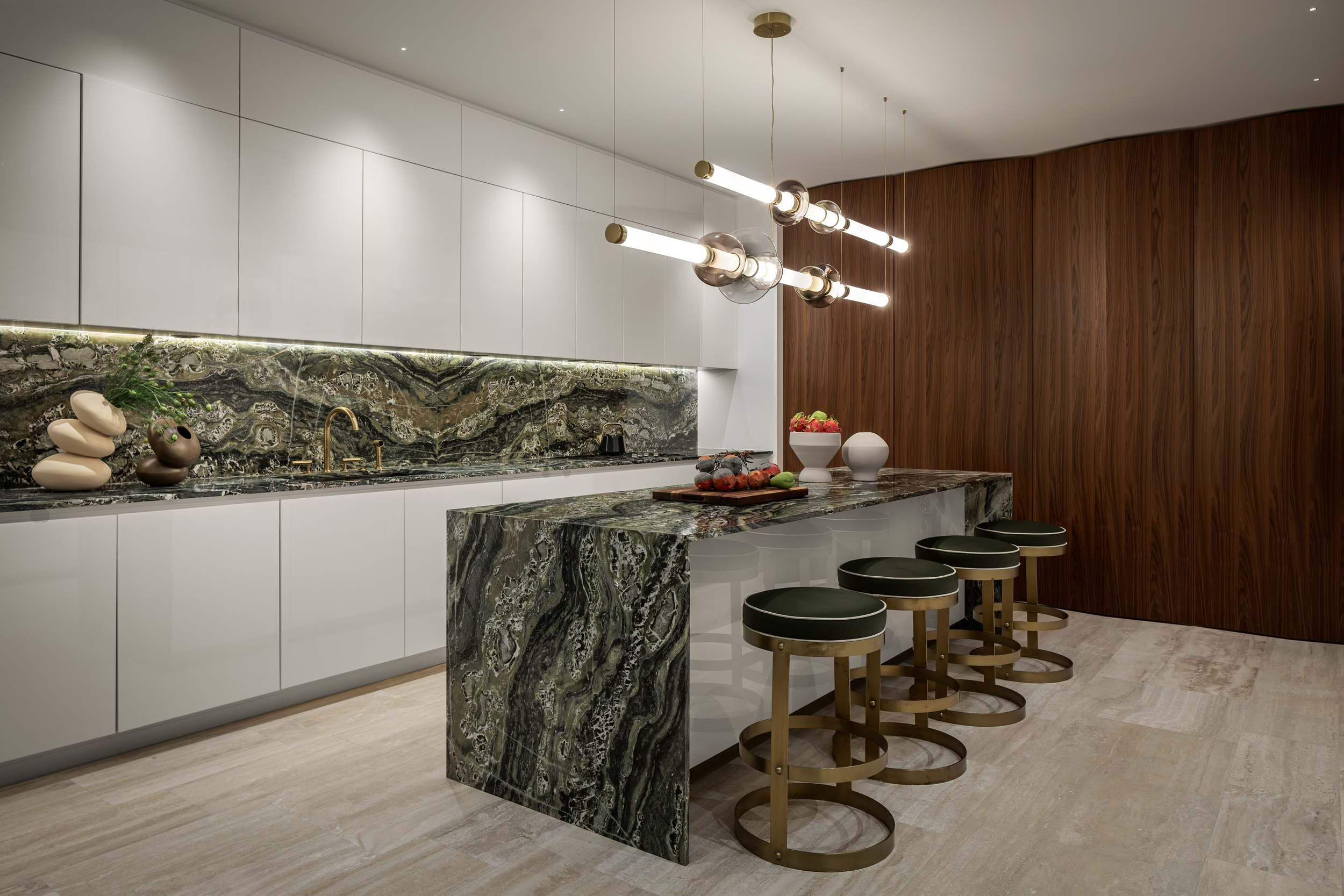 Located in the world renowned Surf Club Four Seasons in Surfside, Love Lake Studio collaborated with their client to re-imagine and enhance the features of their Richard Meier designed residence. Colorful stone, modern millwork, integrated lighting and custom furniture pieces combine to create an atmosphere of comfortable refinement.