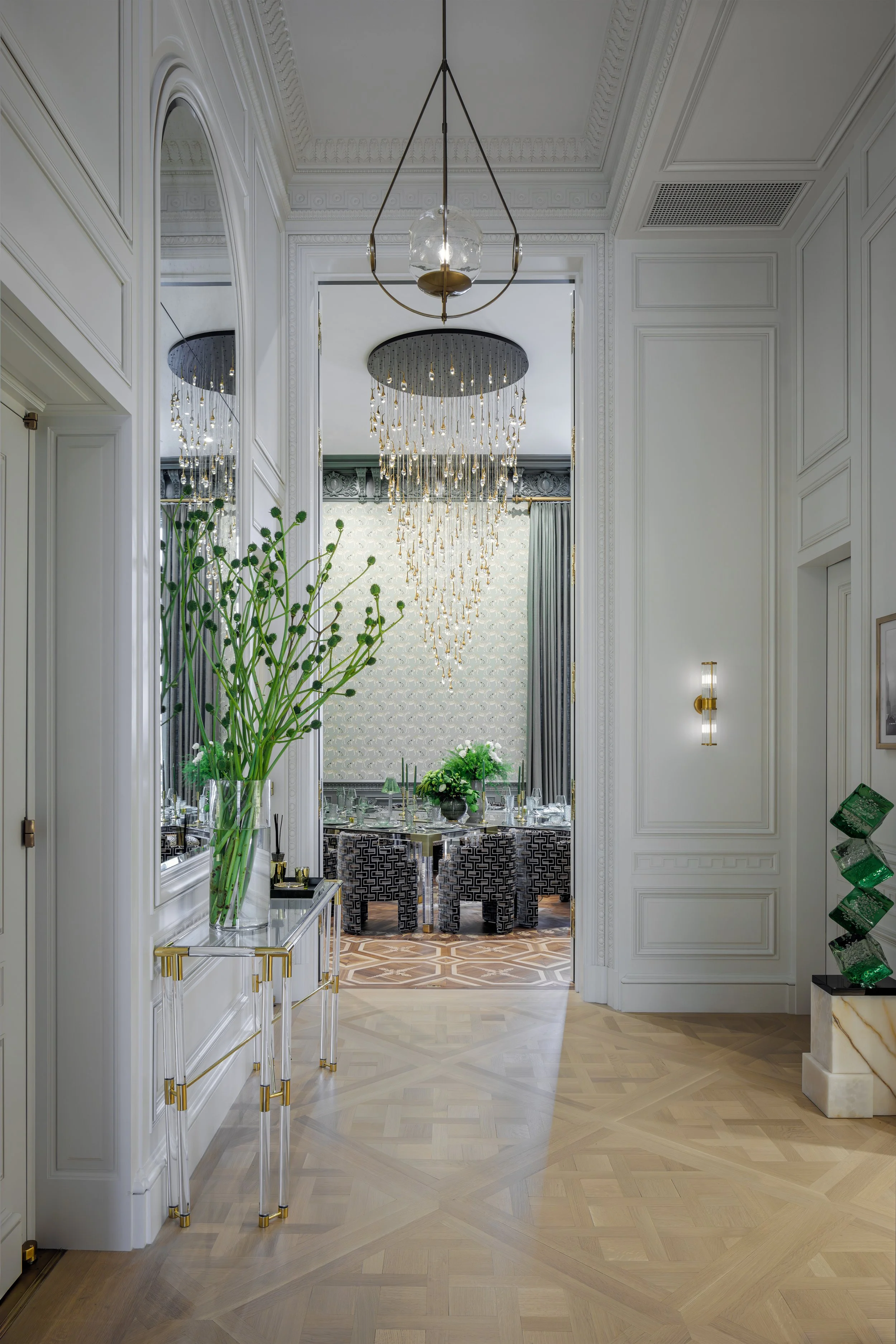A Family townhouse on Manhattans Upper East Side is given a whimsical overhaul that seamlessly blends diverse patterns and colors with custom furniture and lighting. The design reflects a harmonious interplay of style and sophistication, creating a distinctive living space.